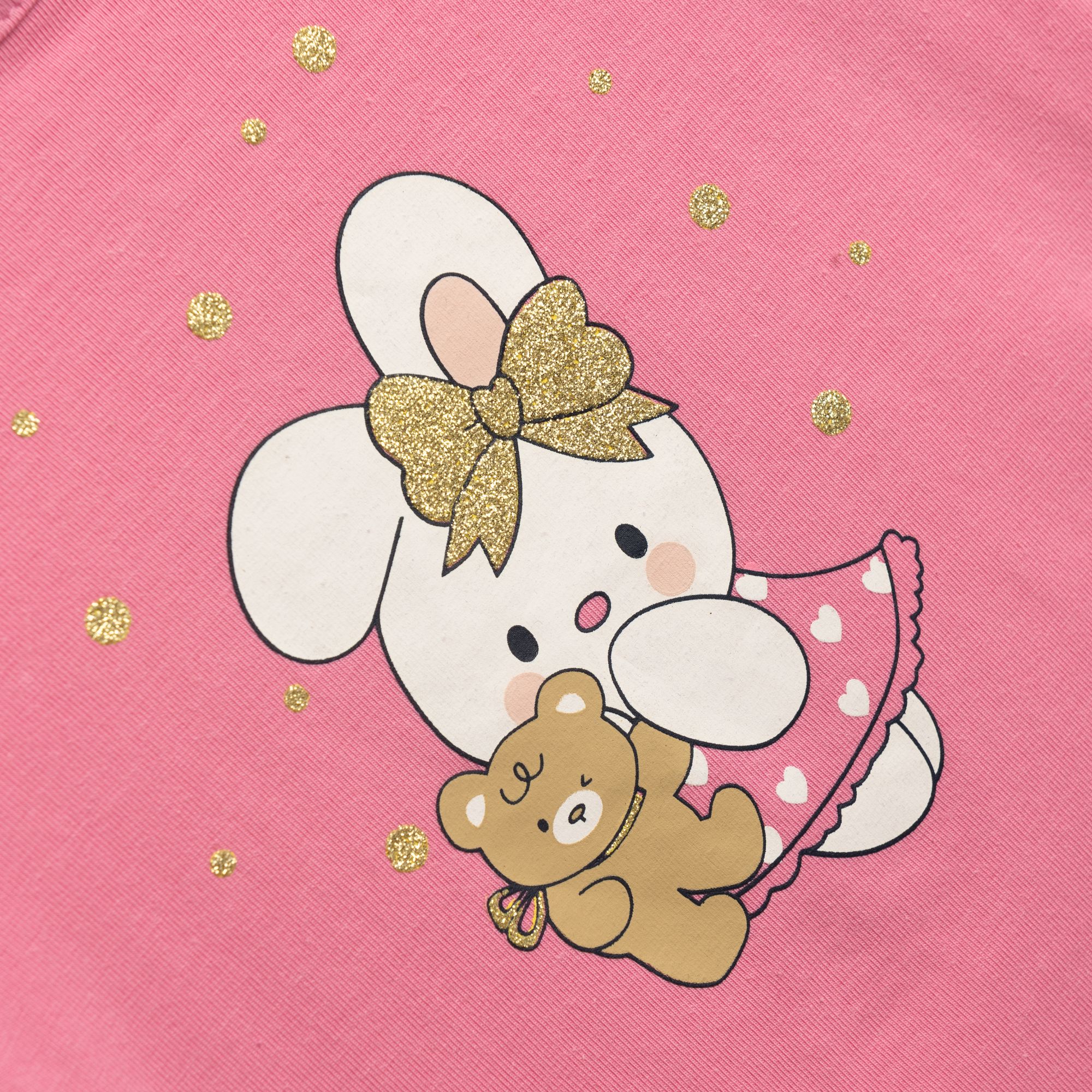 T-Shirt jersey lycra with printing (bunny) and leggings capri with printing allover in color candy pink/blue for girls months