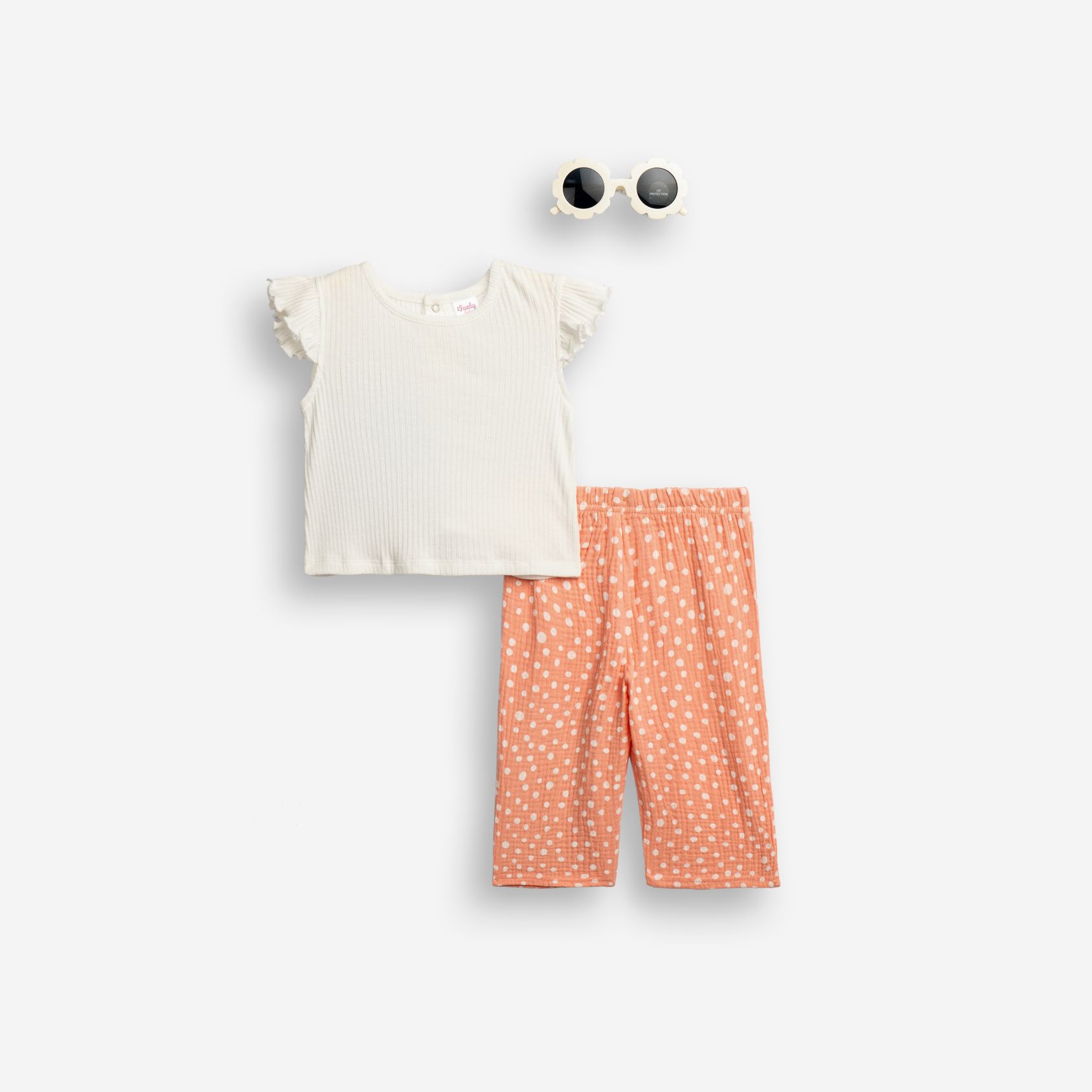 Blouse and pants with polka dots and glasses in color white/type for girls months