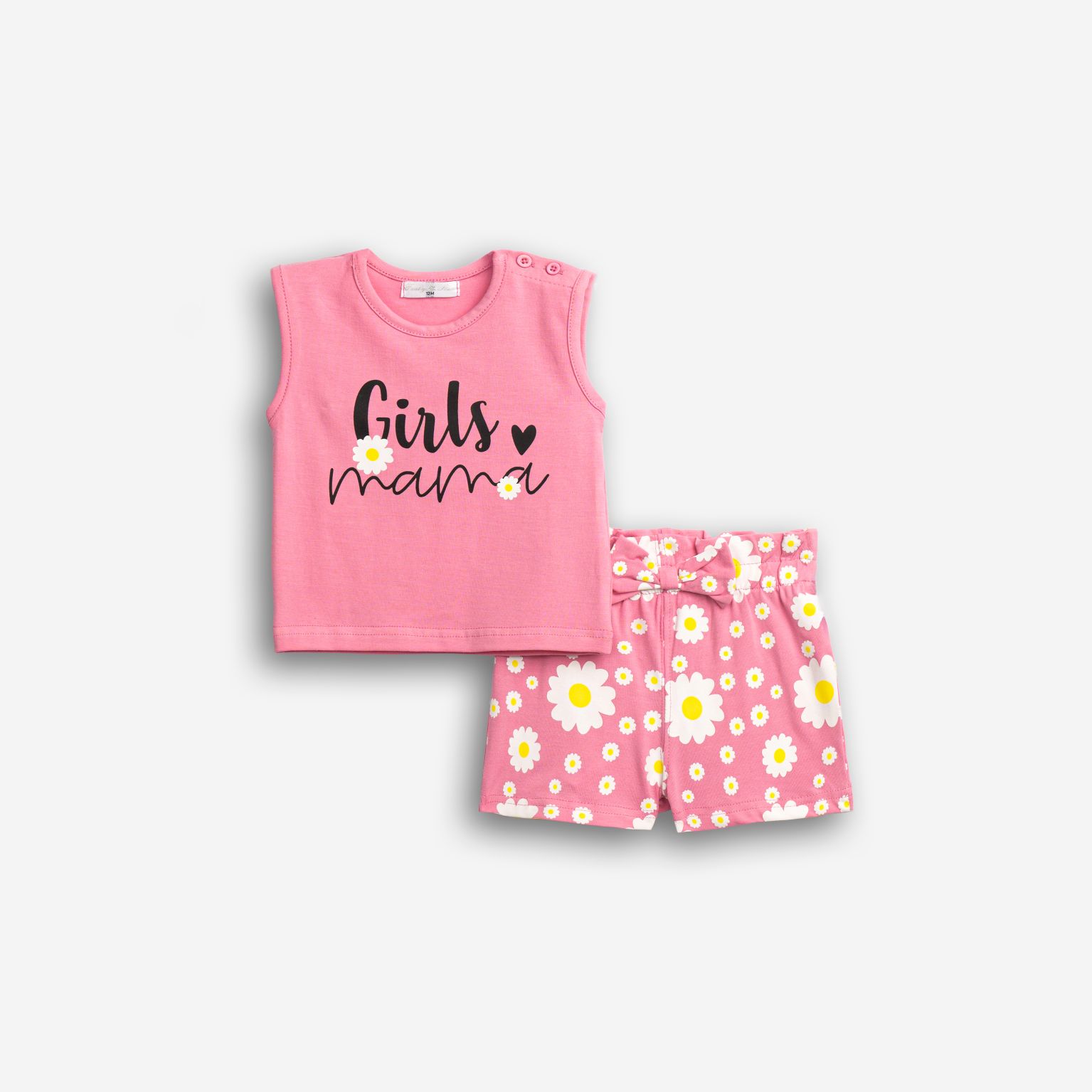 Set blouse with printing (girls mama) and shorts with printing (chamomile) allover in color candy pink/candy pink for girls months