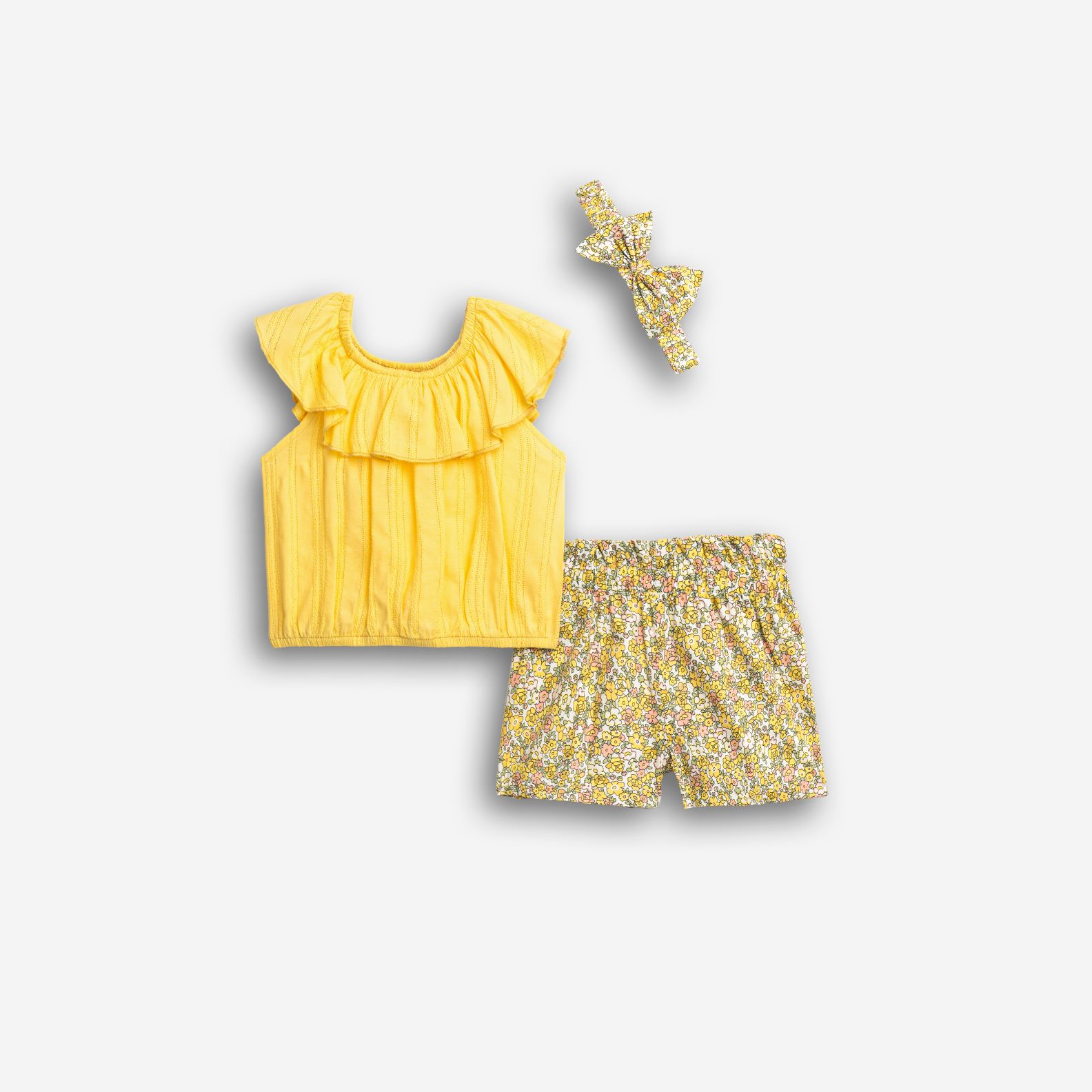 Set blouse and shorts with printing (flowers) allover and headband in color type for girls months