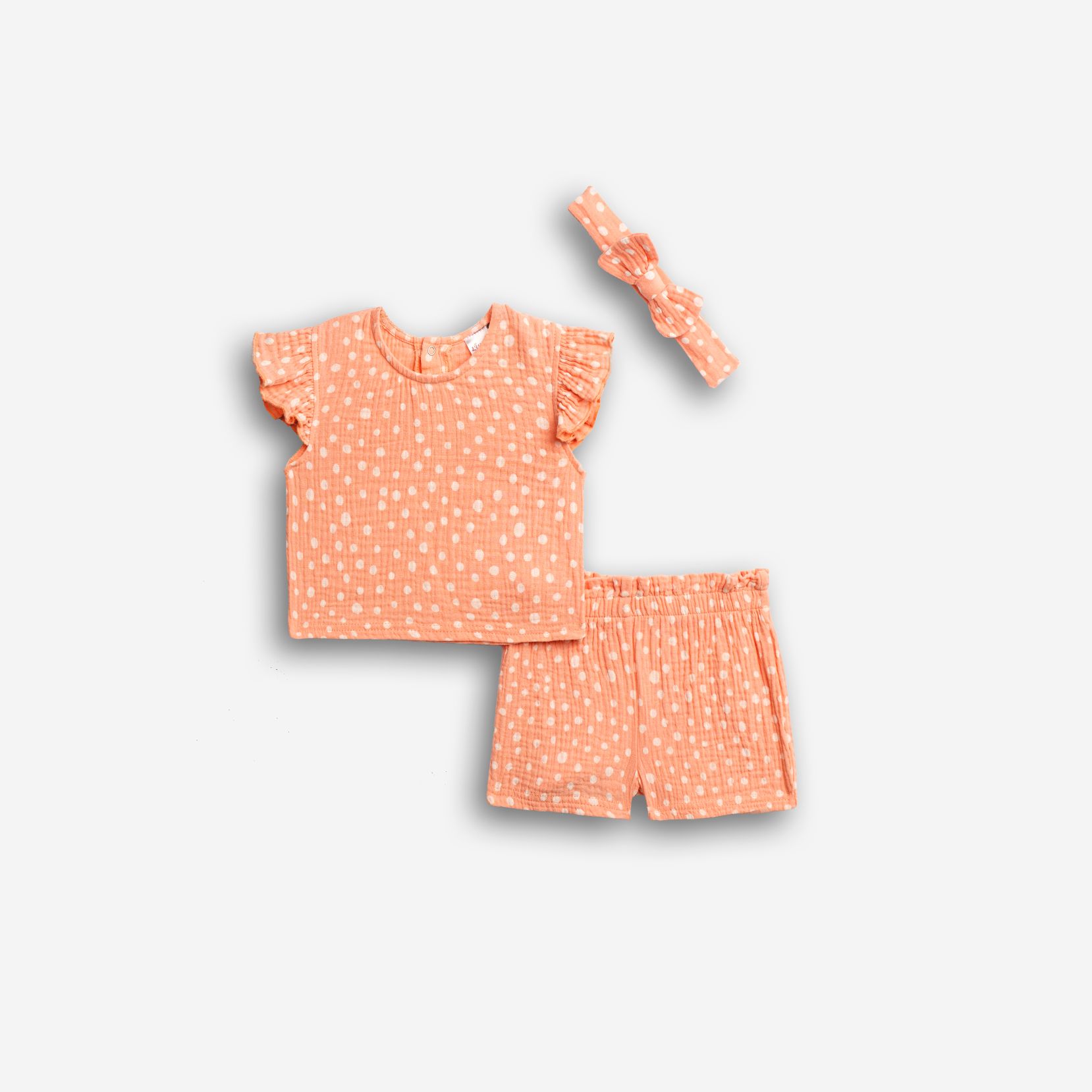Set blouse with printing (dots) allover and shorts with printing allover and headband in color type for girls months