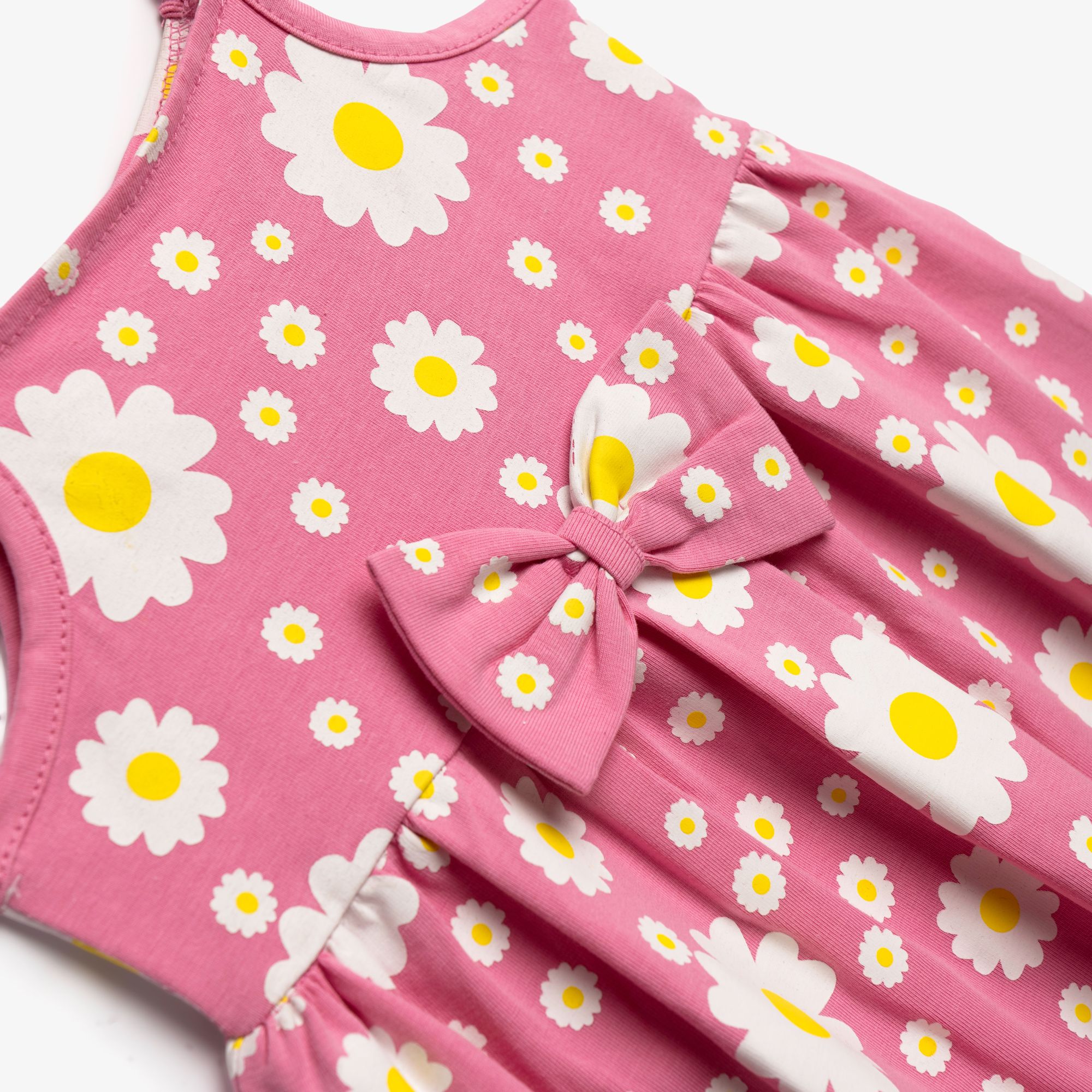 Dress jersey lycra with printing (chamomile) allover in color candy pink for girls months