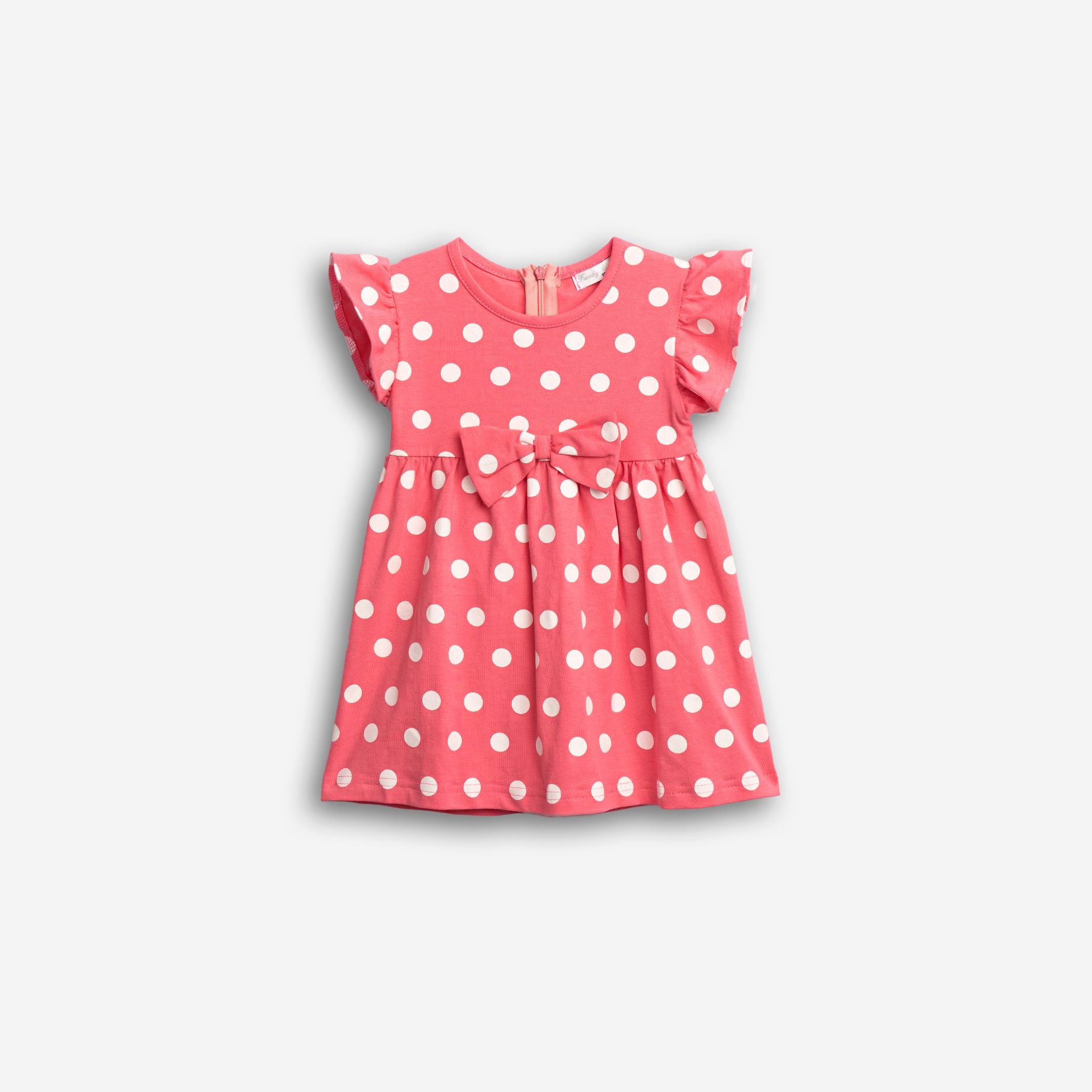Dress jersey lycra with printing (dots) allover in color pink flamingo for girls months