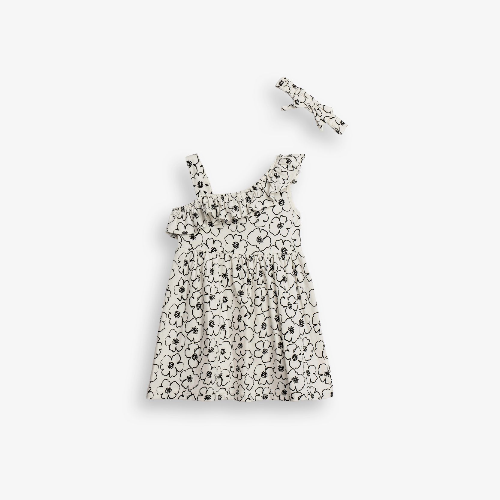 Dress jersey lycra with printing (flowers) allover and headband in color pink flamingo for girls months
