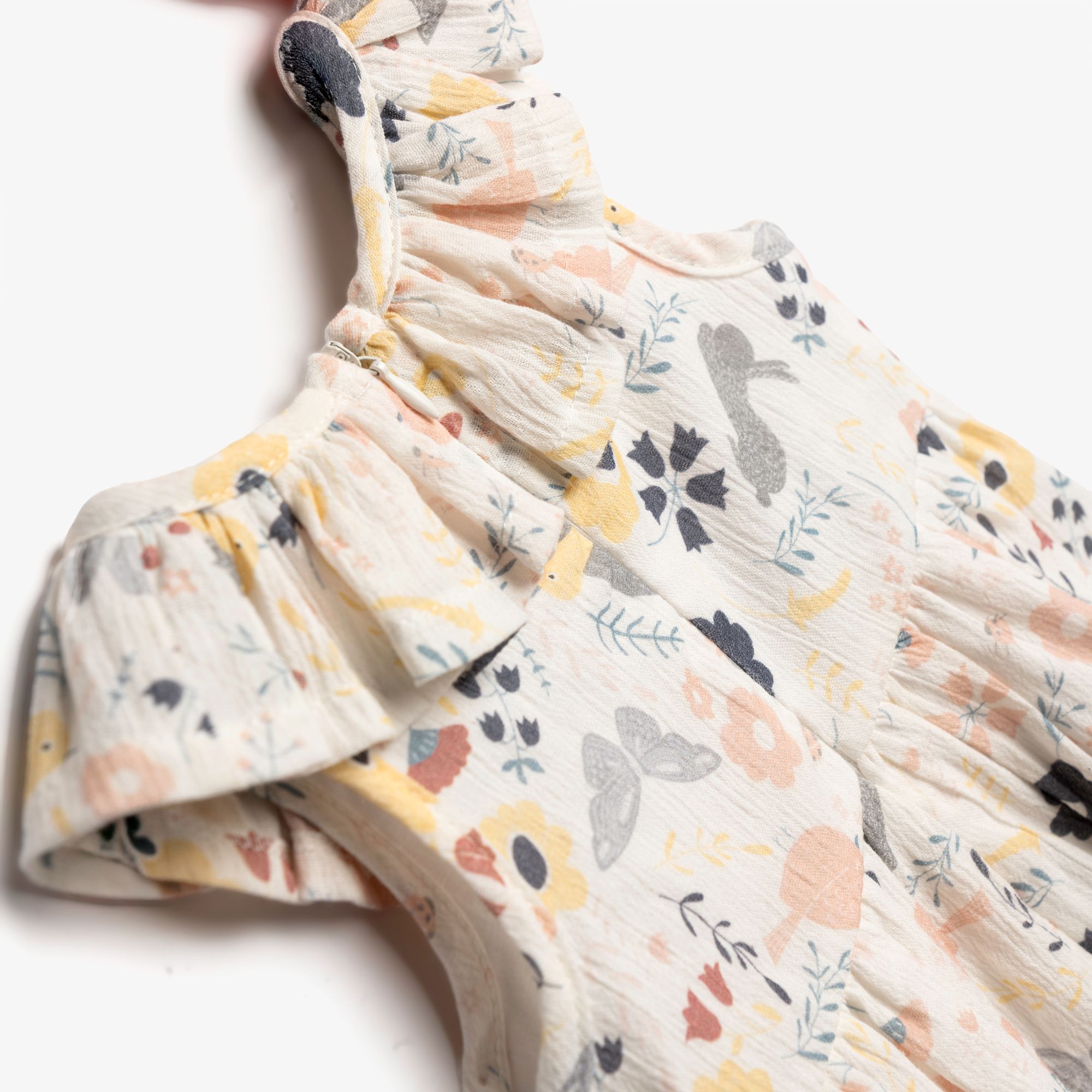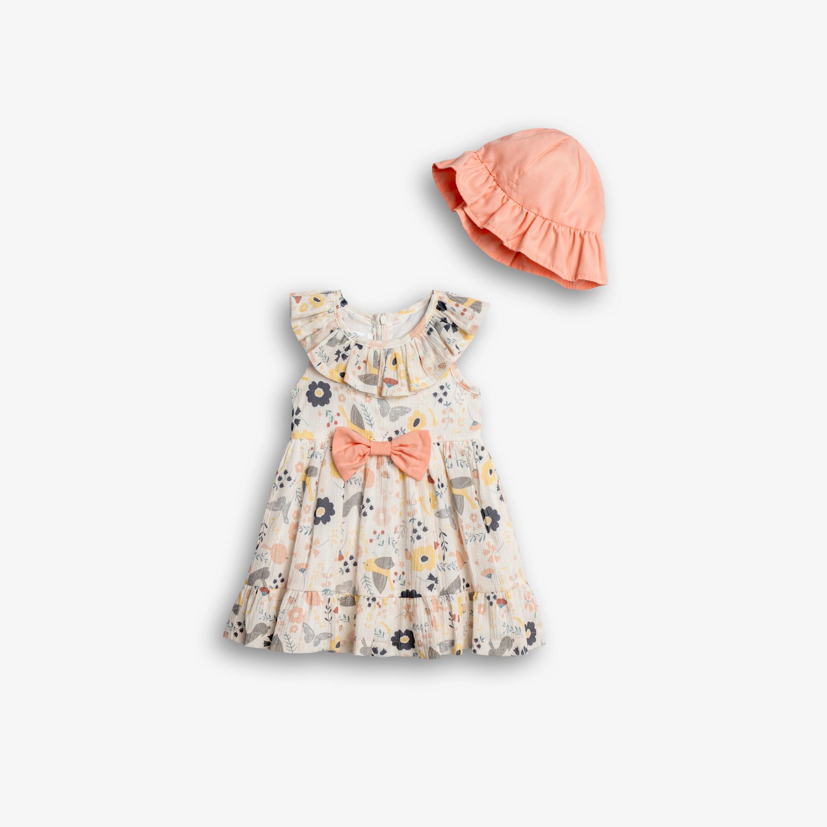Dress and hat with printing (various designs) allover in color type for girls months