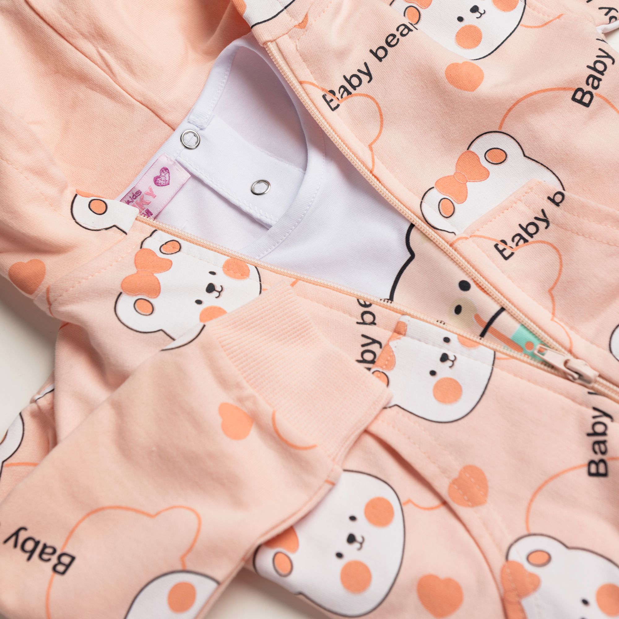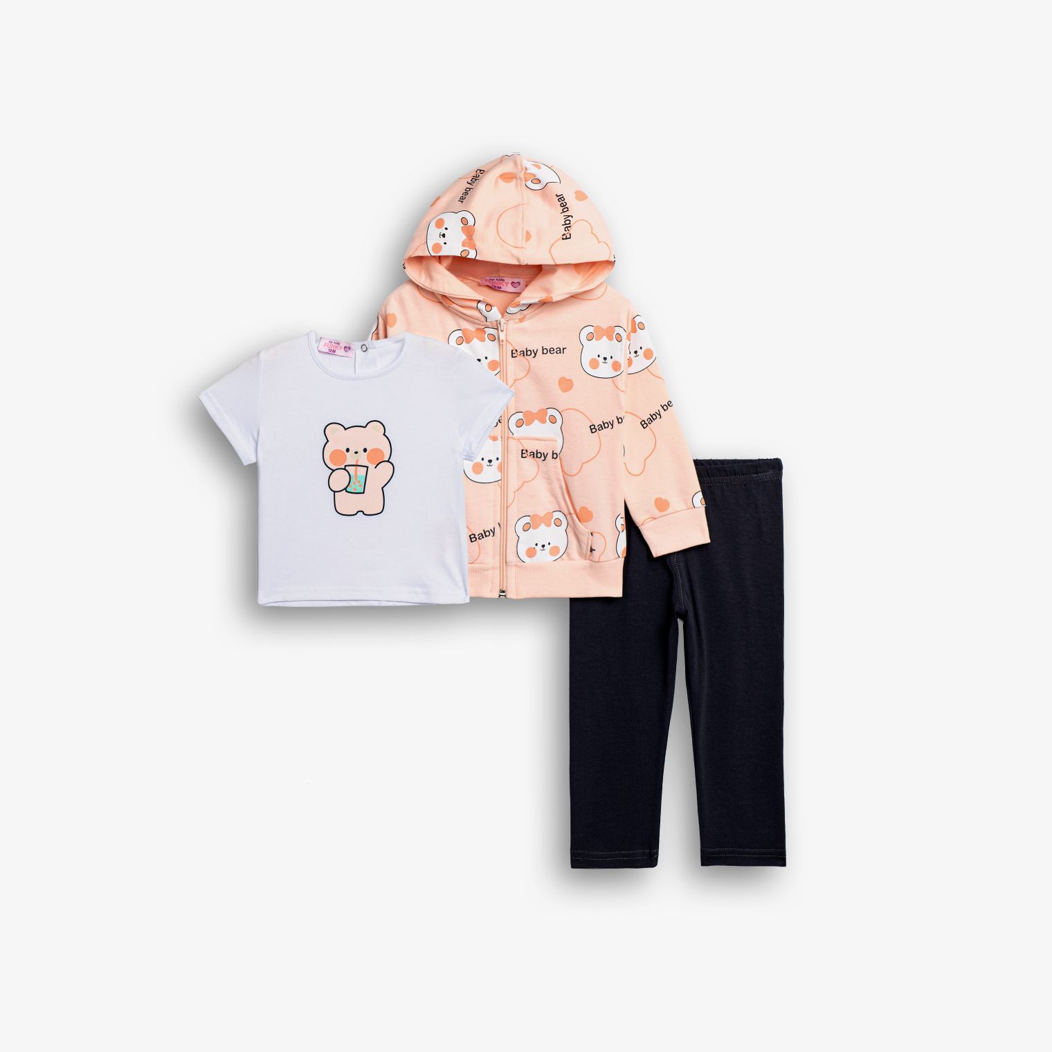 Set 3 pcs jacket fleece with printing (teddy bears) allover and blouse long-sleeved jersey lycra with printing and leggings jersey lycra in color pink/white/anthracite for girls months