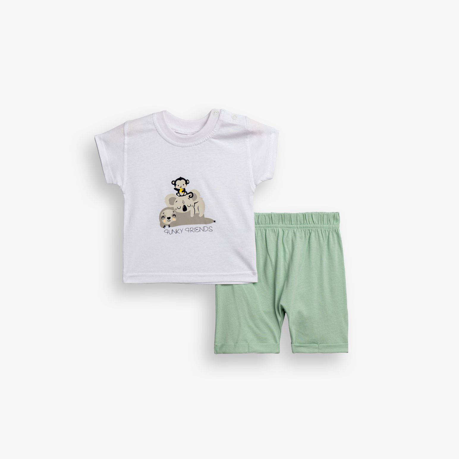 Set short-sleeved shirt with printing (koala friends) and shorts in colour white/peanut for newborn boys