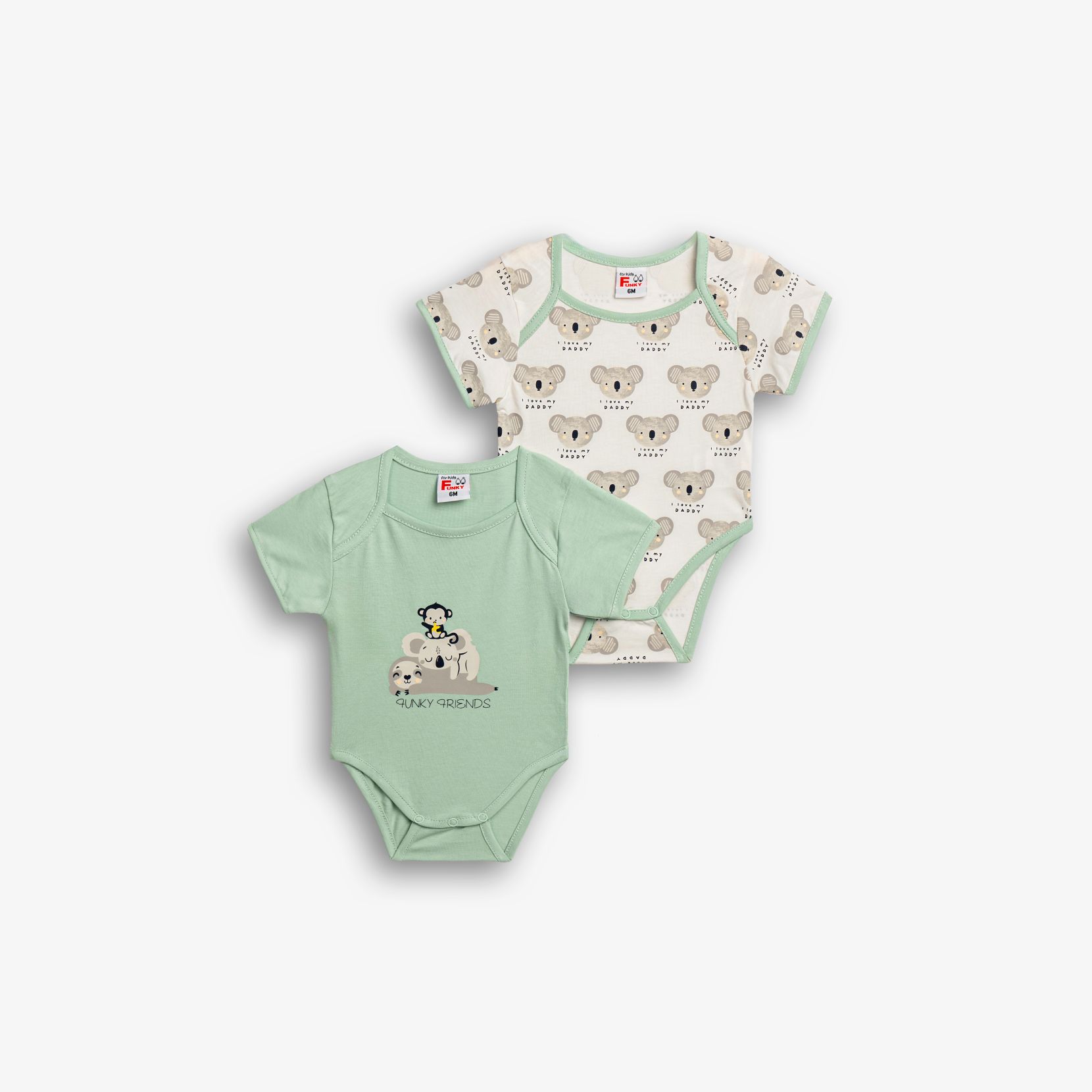 Set 2pcs bodysuits with printing (koala friends) in color ecru allover/peanut for newborn boys