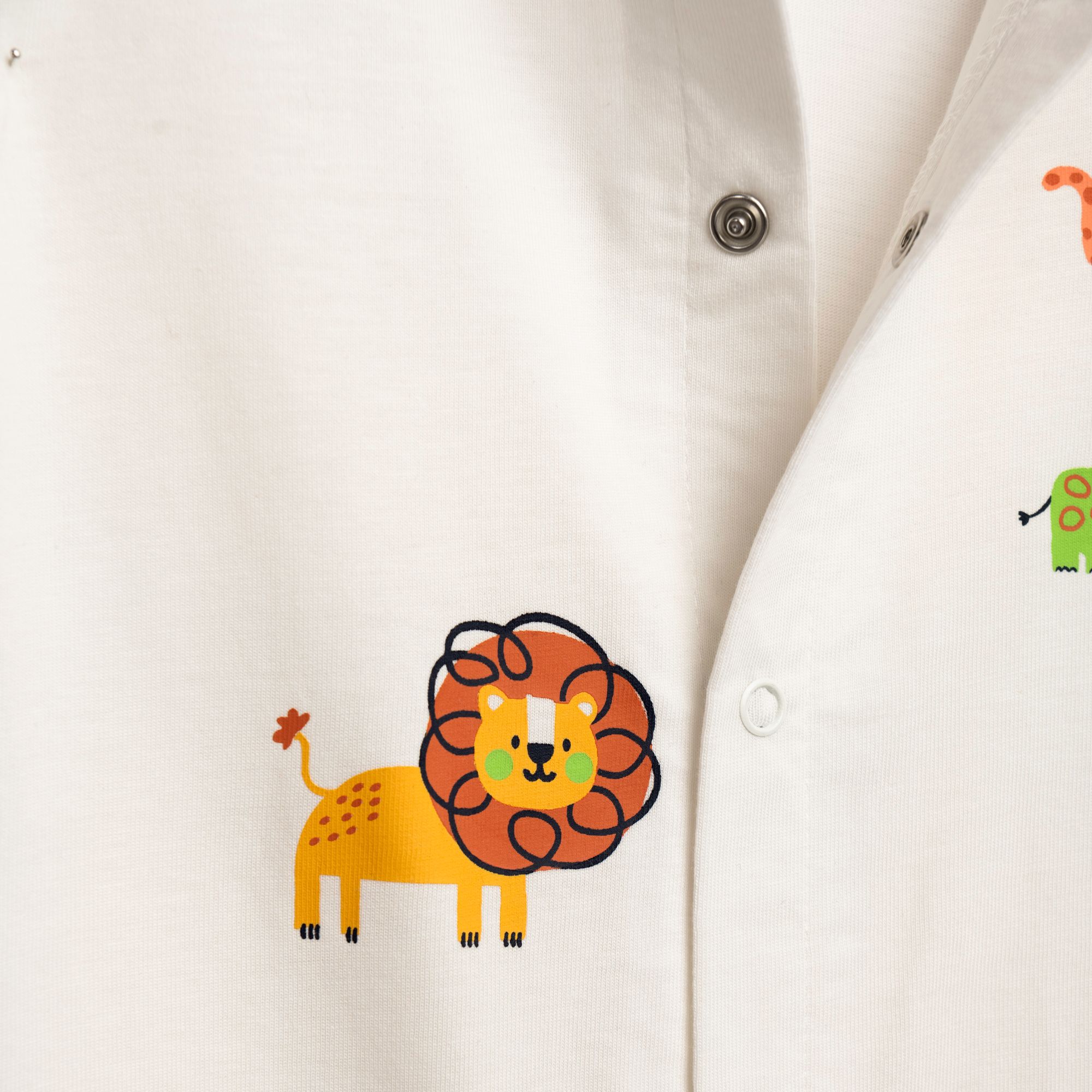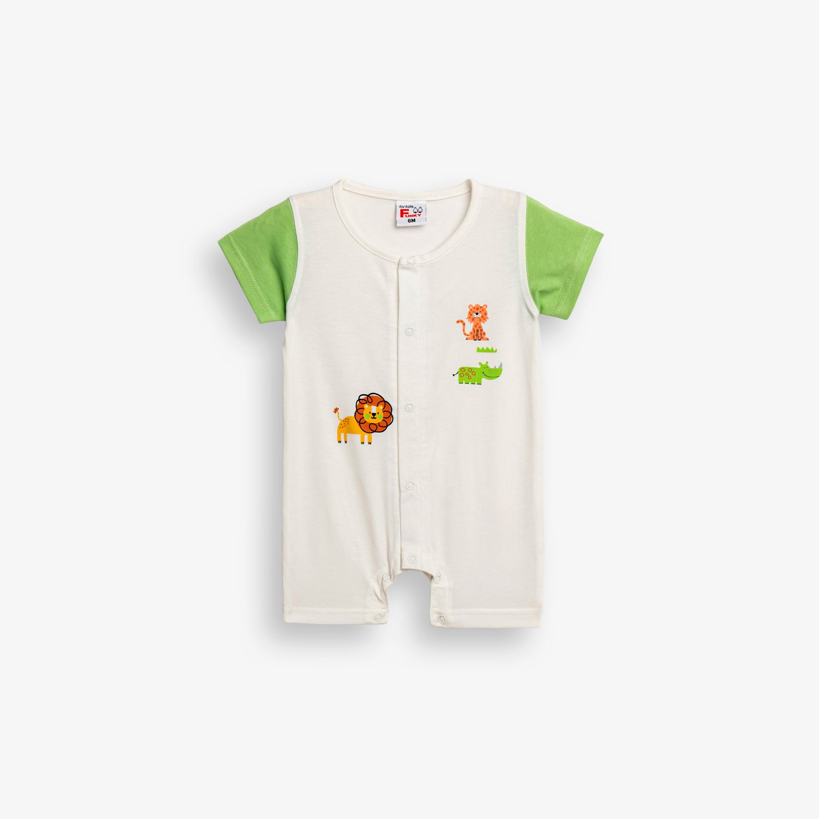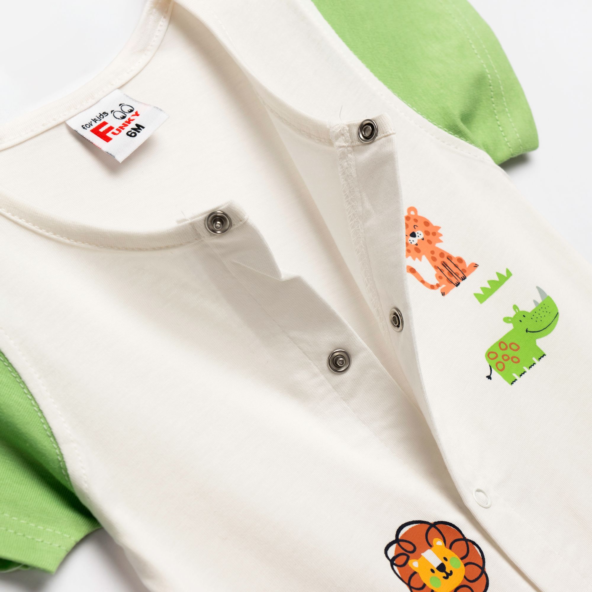 Bodysuit short-sleeved with printing (animals) in color ecru-light grass for newborn boys